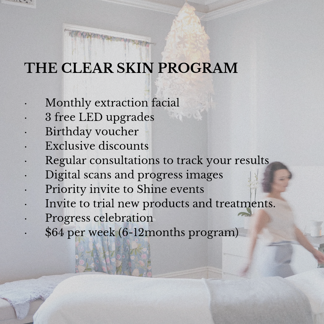 The Shine Collective is our membership program that gives you regular facials, expert guidance and member only benefits. It is designed to stabilise your skin, remove the guesswork and make consistent professional care easy to maintain.